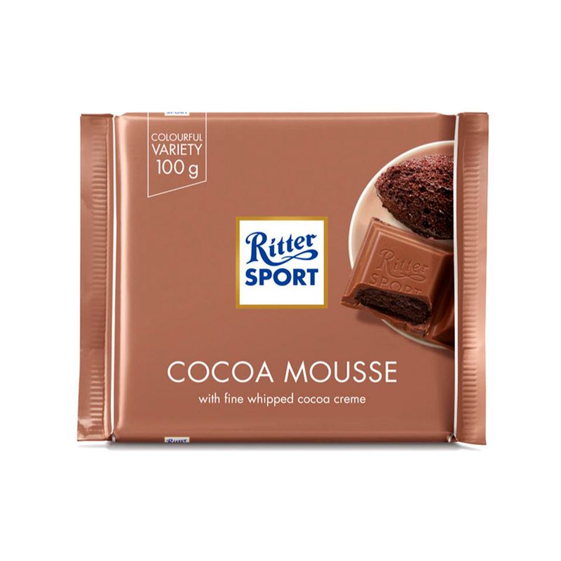 (no reviews yet) write a review. Products from the category «confectionery & snacks». All products, ritter sport, ritter sport chocolate bars, view all european & british chocolate tag: Ritter sport chocolate bar • cocoa mousse quantity. It's quite a simple bar compared to some of the other ritter sports i've tried recently.